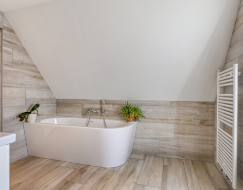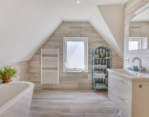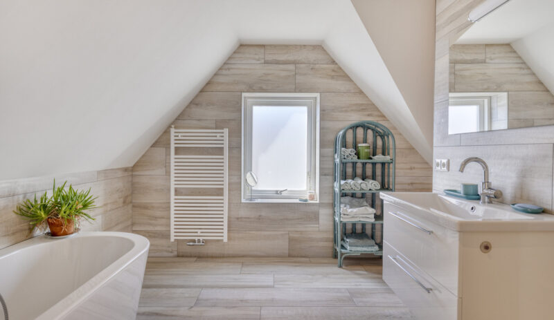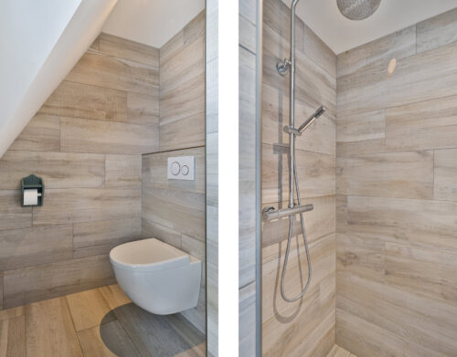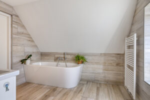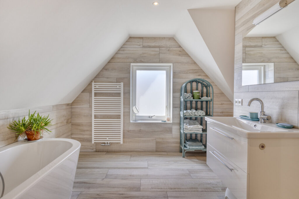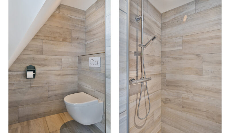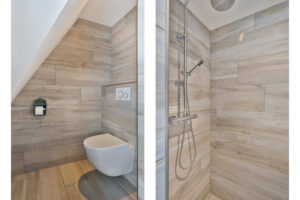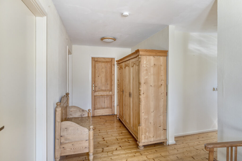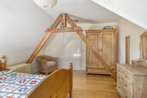 Via de authentieke trap kom je op de eerste verdieping. Vanuit de ruime overloop heb je toegang tot drie riante slaapkamers, waarvan in de grootste de dakspanten mooi in het zicht zijn. Tevens vind je op de eerste verdieping een praktische berging/walk in closet en de recent (2022) gemoderniseerde badkamer. De badkamer is voorzien van wastafel met meubel, inloop douche, ligbad, wandcloset en vloerverwarming, geheel eigentijds afgewerkt.