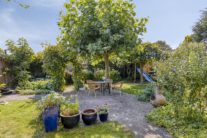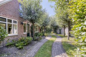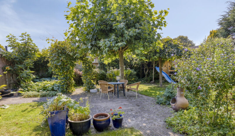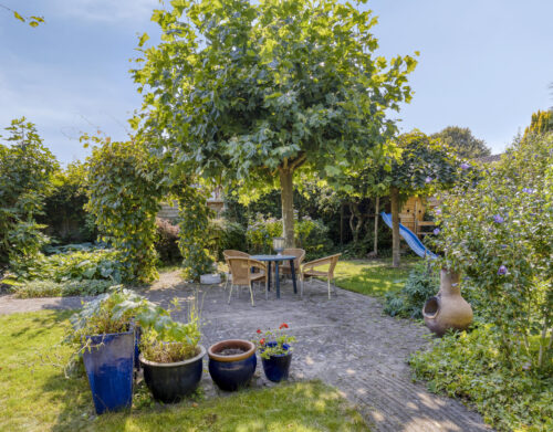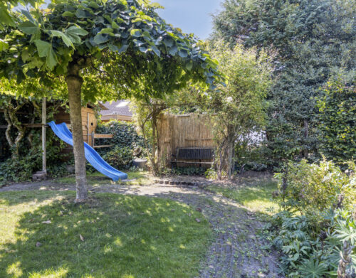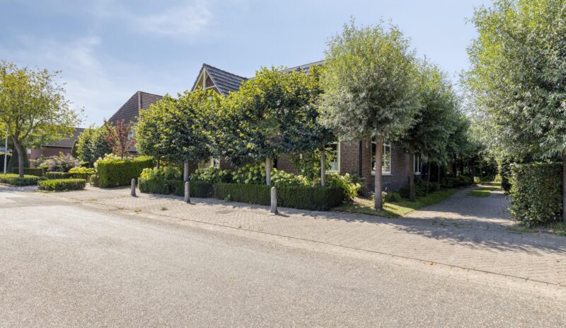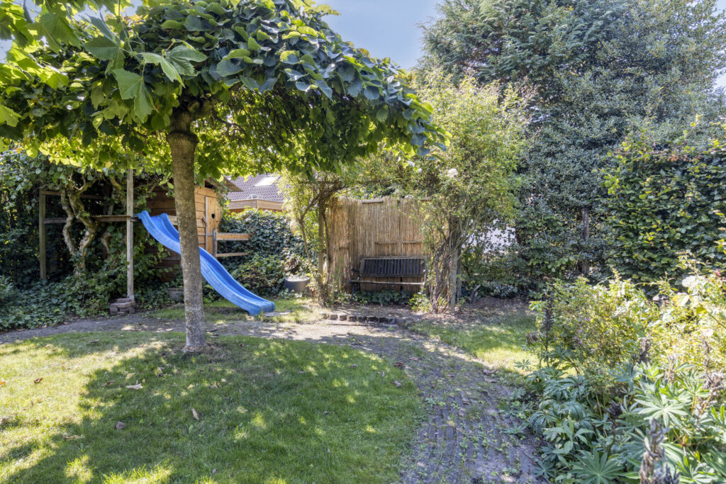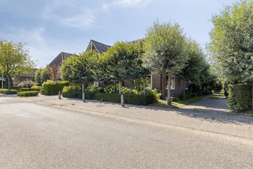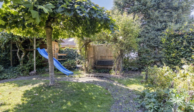 De buitenruimte bestaat uit een groene voor-, zij- en achtertuin, waarbij de achtertuin van een prettig formaat is en veel privacy biedt. Aan beide zijden van de woning kunnen meerdere voertuigen op eigen terrein geparkeerd worden.