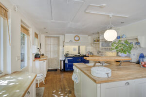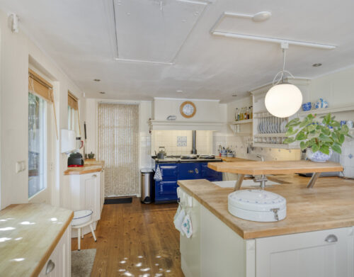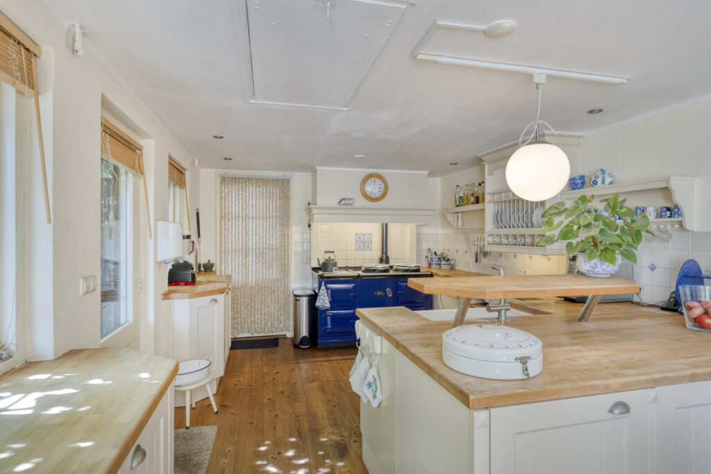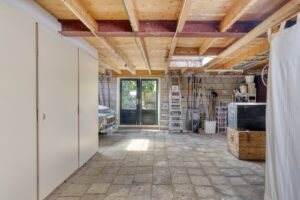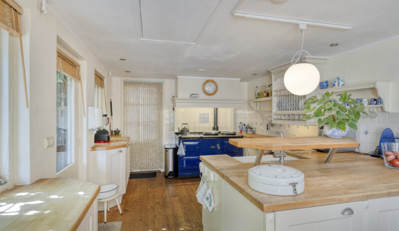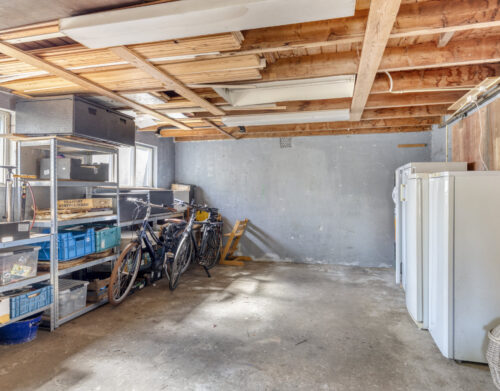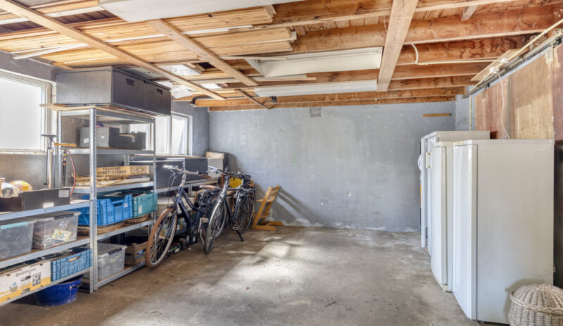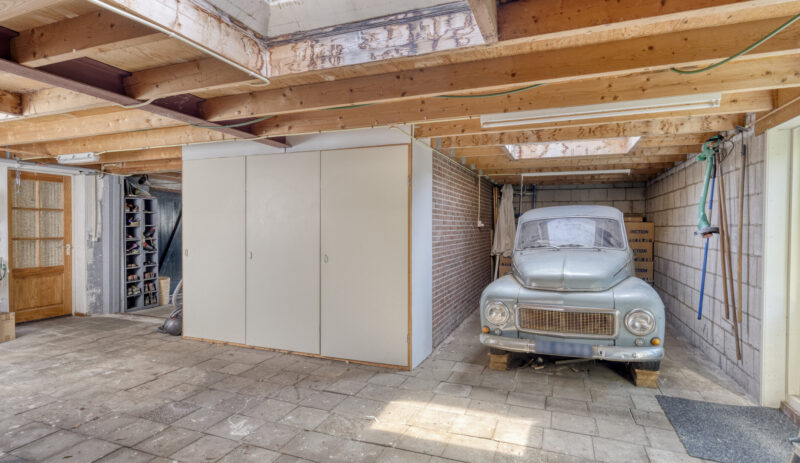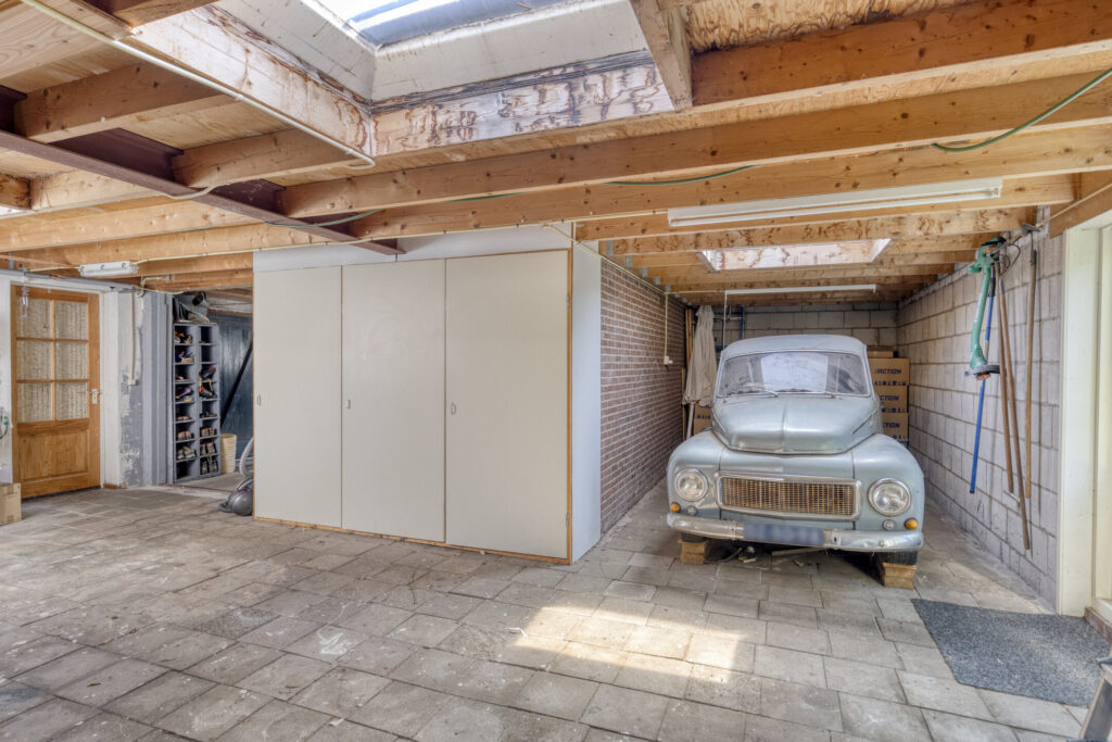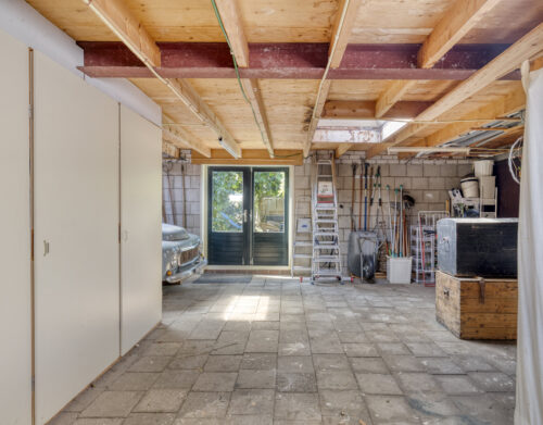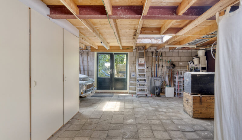 Achter in de keuken bevindt zich de toegang tot een zeer ruim bijgebouw, op dit moment in gebruik als schuur/werkplaats en garage. Deze ruimte beslaat een oppervlakte van maar liefst ca. 100 m² en is wederom uitermate geschikt voor een veelvoud aan verschillende functies.