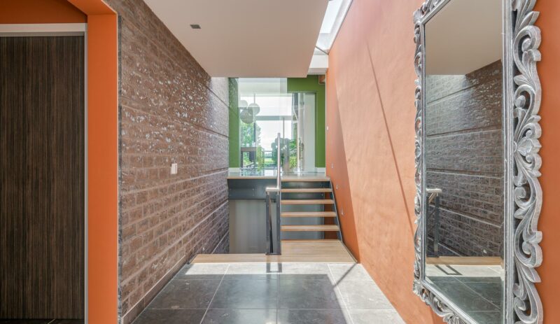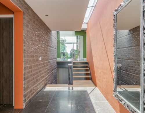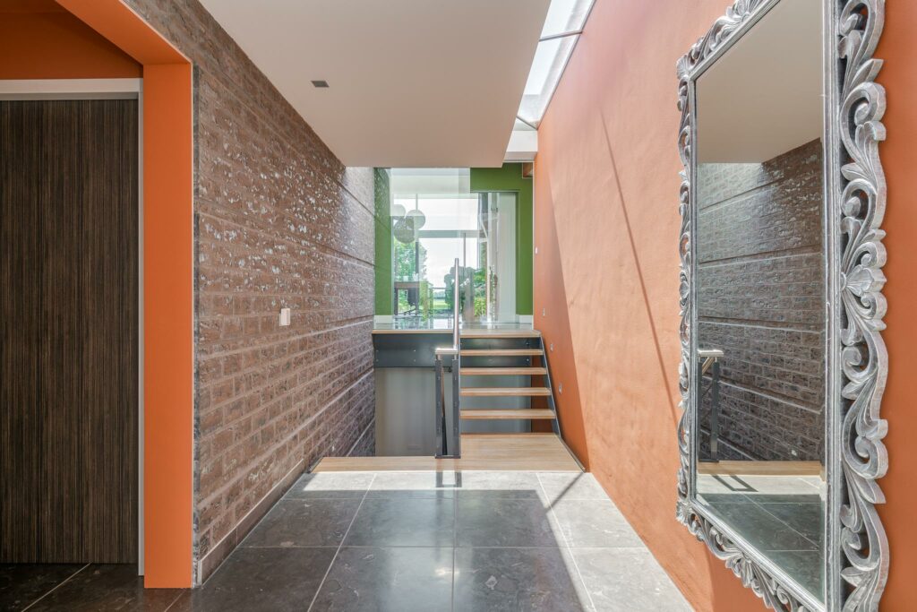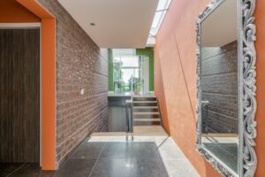 Via de entree betreedt u een royale ontvangsthal met lichtstraat. Deze ontvangsthal staat in verbinding met het woongedeelte, het souterrain en geeft toegang tot de toilet en master bedroom op de begane grond.