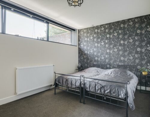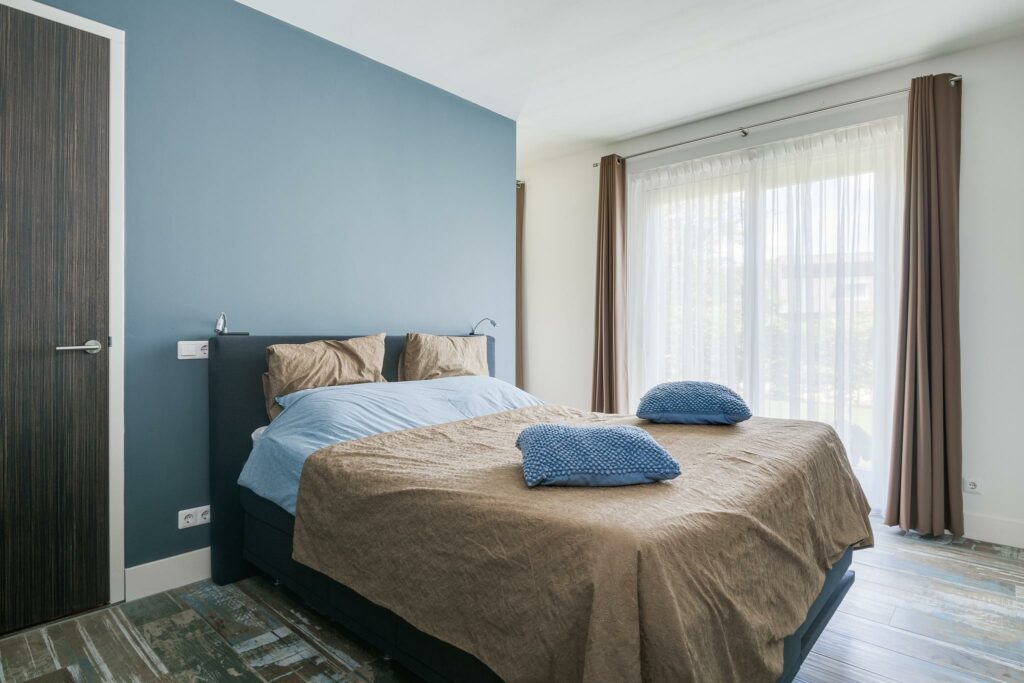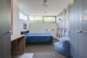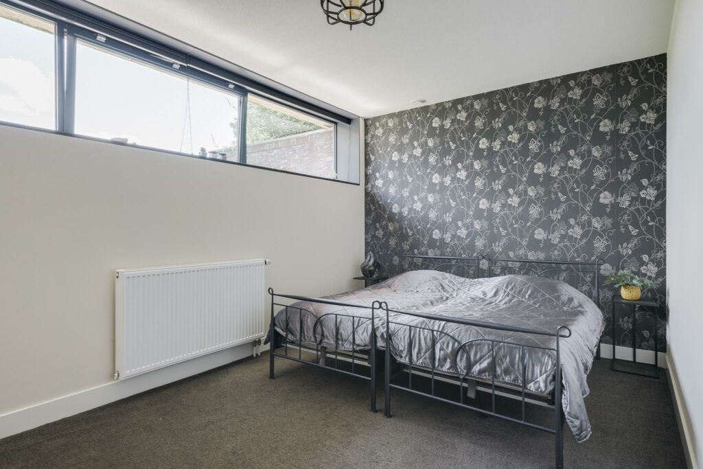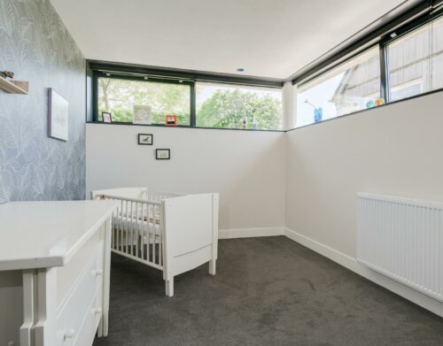 De verdieping telt drie slaapkamers, waarvan de master een prachtig panoramisch uitzicht biedt. Ook is er ruimte voor wasmachine en droger.