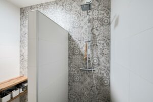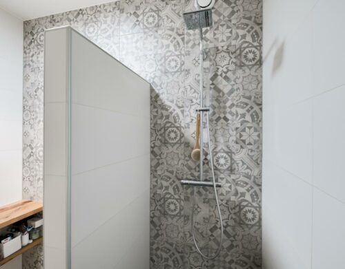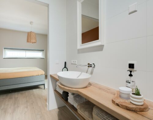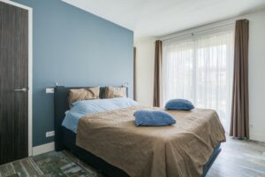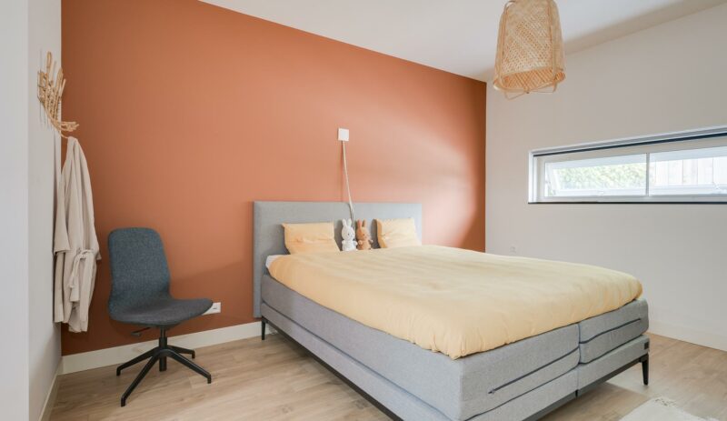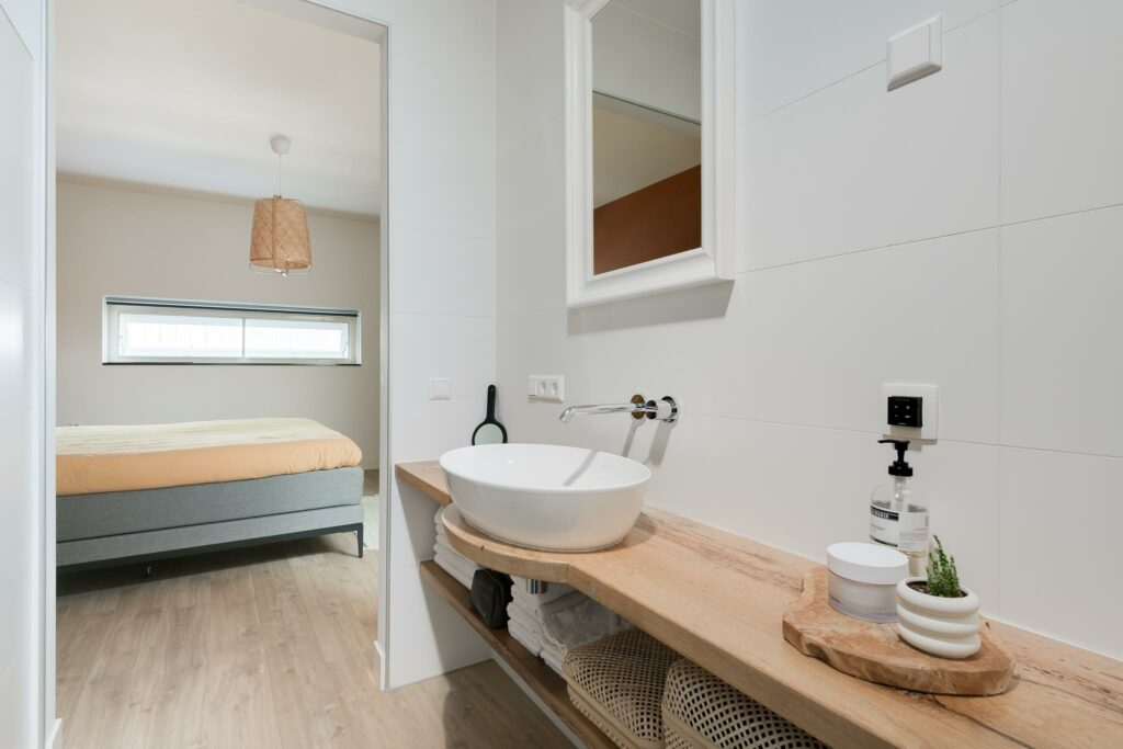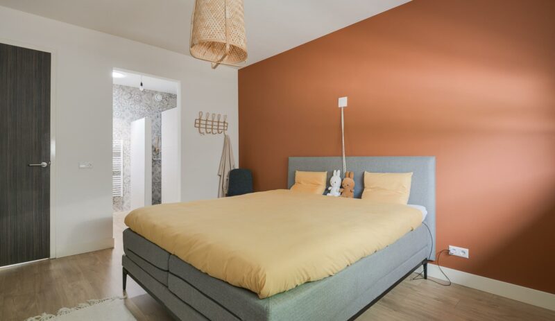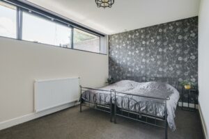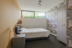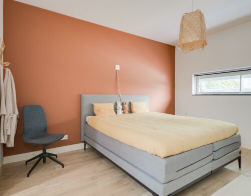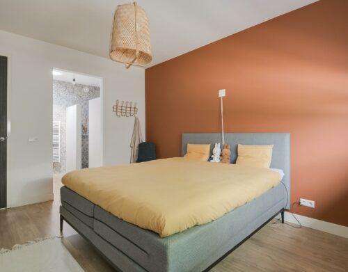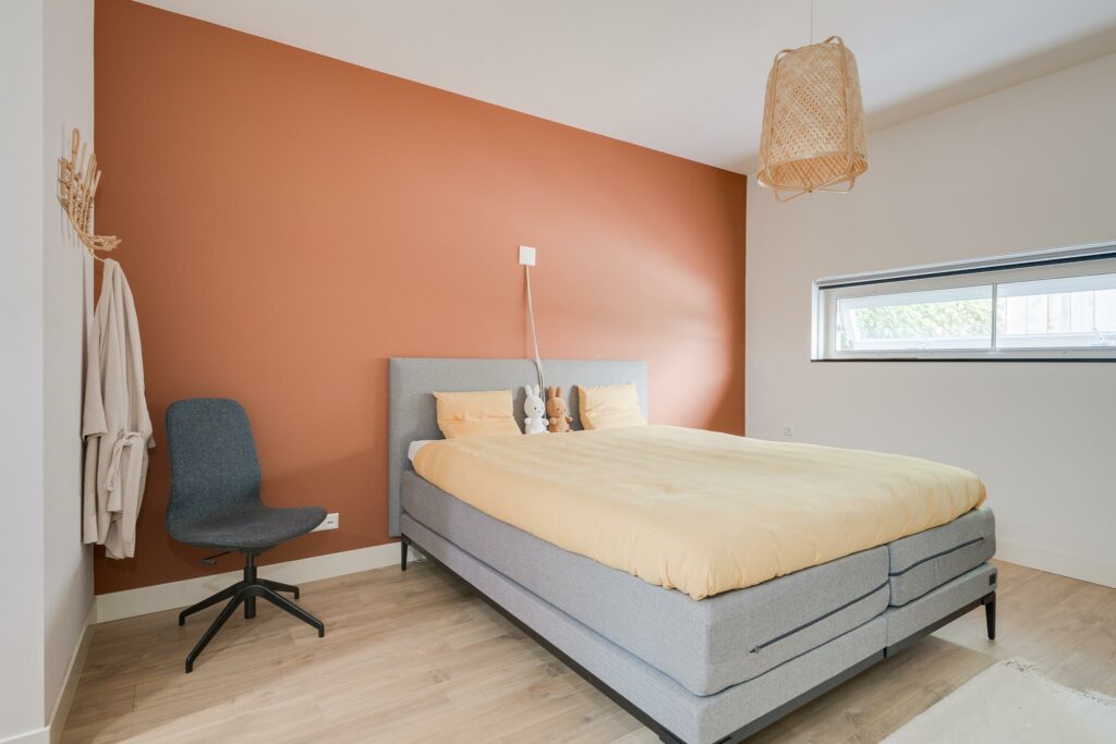 De keuken loopt naadloos over in de lichte woonkamer, samen goed voor ca. 40 m² aan leefruimte. Vanuit de woonkamer bereik je de royale slaapkamer met voldoende ruimte voor een groot bed en kasten. De slaapkamer heeft direct toegang tot een moderne badkamer, ingericht met een inloop(regen)douche, stijlvol wastafelmeubel en een wandcloset.