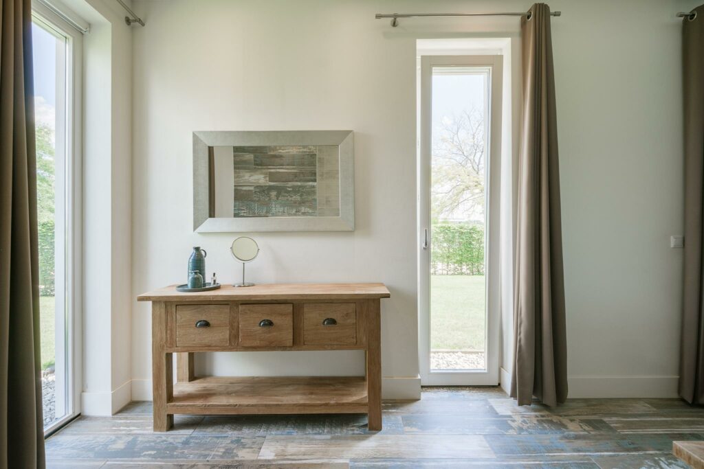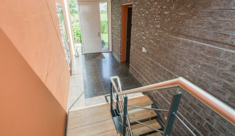 Via een kleine trapopgang betreed u het woongedeelte op de begane grond. Hier bevindt zich een lichte en sfeervolle woonkamer van 53 m², gekenmerkt door robuuste houten spanten en een grote glazen pui die toegang biedt tot het royale overdekte terras van ca. 70m2. Aangrenzend ligt een charmante (eet)kamer, die zich uitstekend leent als kantoor, bibliotheek of atelier. De luxe woonkeuken met kookeiland is volledig ingericht voor wie graag uitgebreid kookt en vormt een uitnodigende plek voor diners met familie of vrienden. Via de ontvangsthal komt u bij de master bedroom met badkamer en suite kijkt uit over het erf en biedt optimale privacy en comfort. Via de ontvangsthal gaat u met de trap naar beneden en komt u aan in het souterrain. Hier bevinden zich vier slaapkamers, een tweede badkamer (met whirlpool), een technische ruimte en een ruim recreatiegedeelte van circa 90 m²: ideaal als ontspanningsruimte, thuisbioscoop of hobbyruimte.