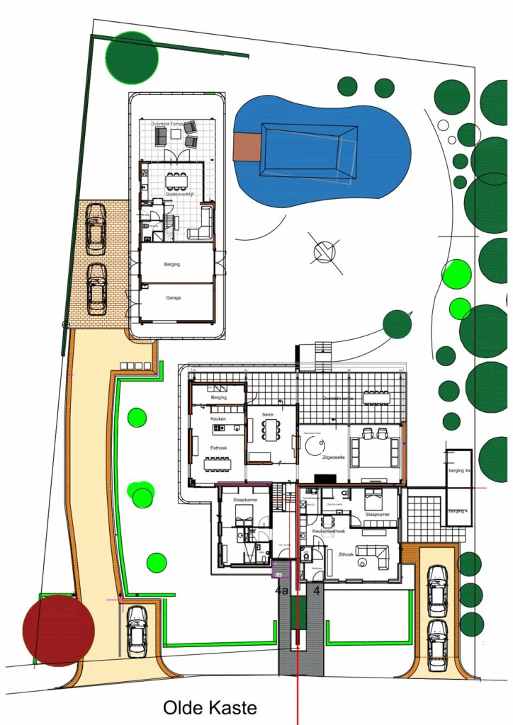 Olde Kaste 4a heeft een perceel van 1.899 m² groot, beschikt over eigen oprit met voortuin, zijtuin en riante achtertuin met vijverpartij.