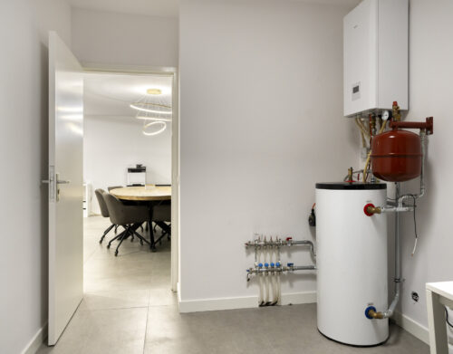 Het pand is de afgelopen jaren grondig verduurzaamd. Hoewel het gebouw al een energielabel A+ had, zijn er nadien nog diverse energiebesparende maatregelen getroffen: 25 zonnepanelen, nieuwe kozijnen en deuren met triple glas, extra plafondisolatie, LED-verlichting en twee warmtepompen, waarmee het pand volledig gasloos is geworden.