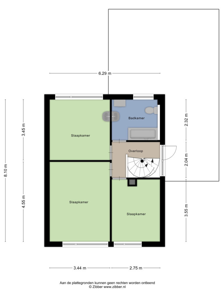 Op de eerste verdieping tref je direct drie royale slaapkamers. Alsmede aan de overloop gelegen is de badkamer welke is uitgerust met een ligbad, toilet en wastafel.
