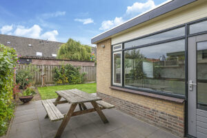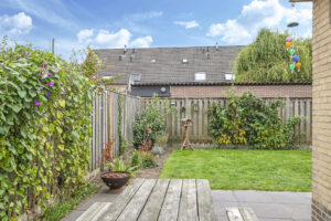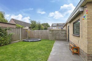 De achtertuin is een heerlijke plek om te ontspannen. Gelegen op het zuidoosten geniet je hier de hele dag van de zon. De tuin is onderhoudsvriendelijk aangelegd en ook bereikbaar via de zijkant van de woning. Deze tuin biedt voldoende ruimte voor spelende kinderen of gezellige zomerse avonden.