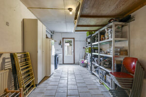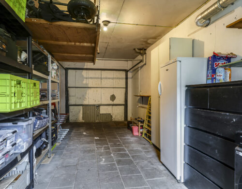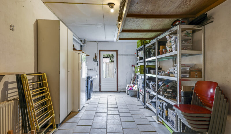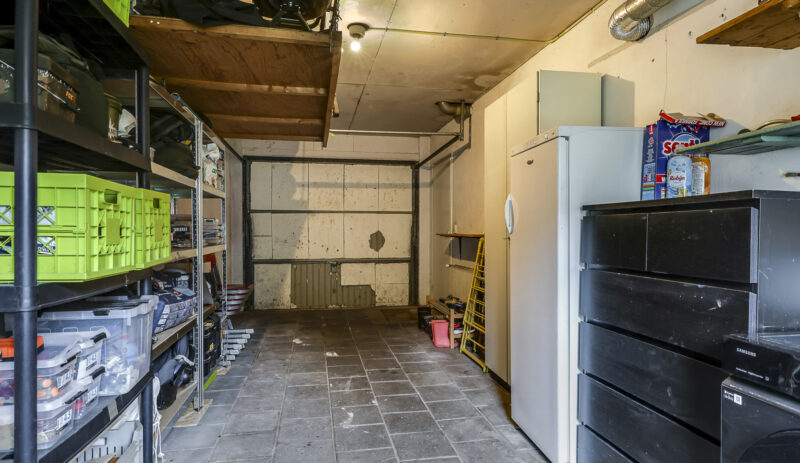 Vanuit de hal heb je ook toegang tot de inpandige garage. Hier vind je de wasmachine en droog aansluiting. De garage is voorzien van verwarming en elektra en is ideaal als berging, hobbyruimte of klusplek.
