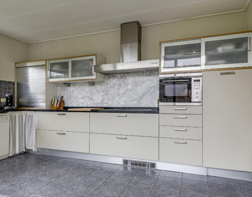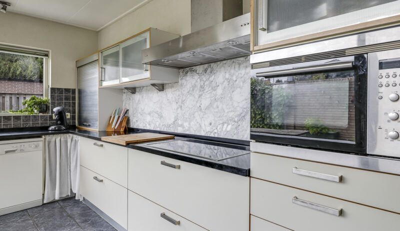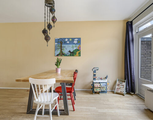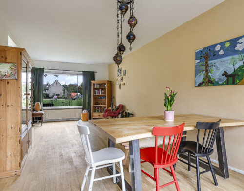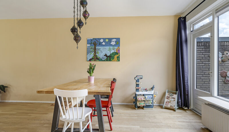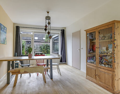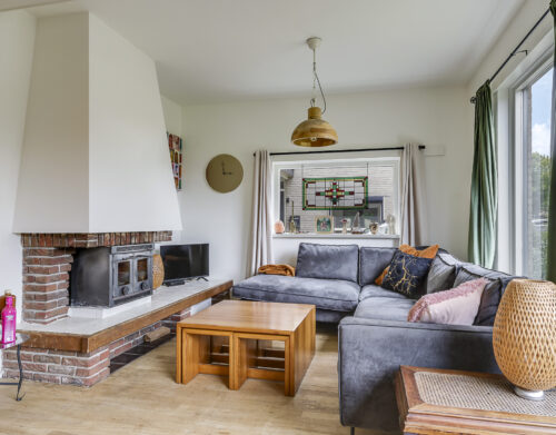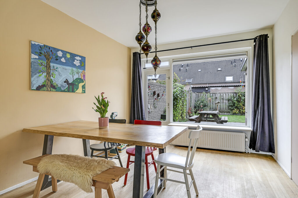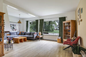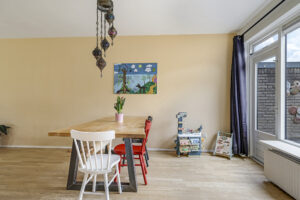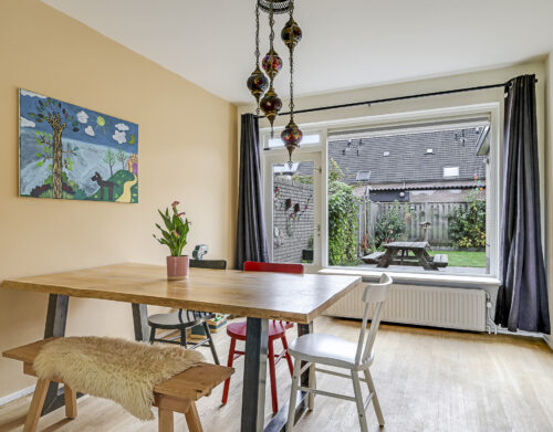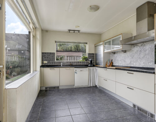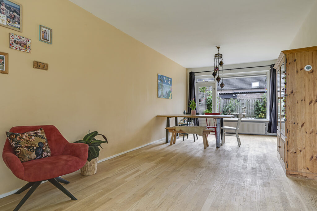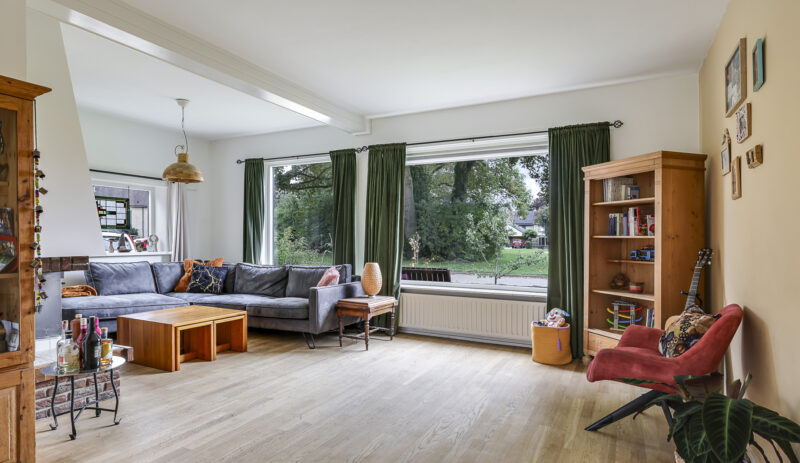 De ruime en lichte woonkamer heeft een nette eikenhouten parketvloer en een gezellige open haard – dé plek om samen te komen op koude winteravonden. De dichte keuken is via de hal te bereiken en vormt het hart van de woning. Deze lichte woonkeuken is voorzien van diverse inbouwapparatuur, waaronder een keramische kookplaat, combi-oven/magnetron, koelkast en losse vaatwasser.