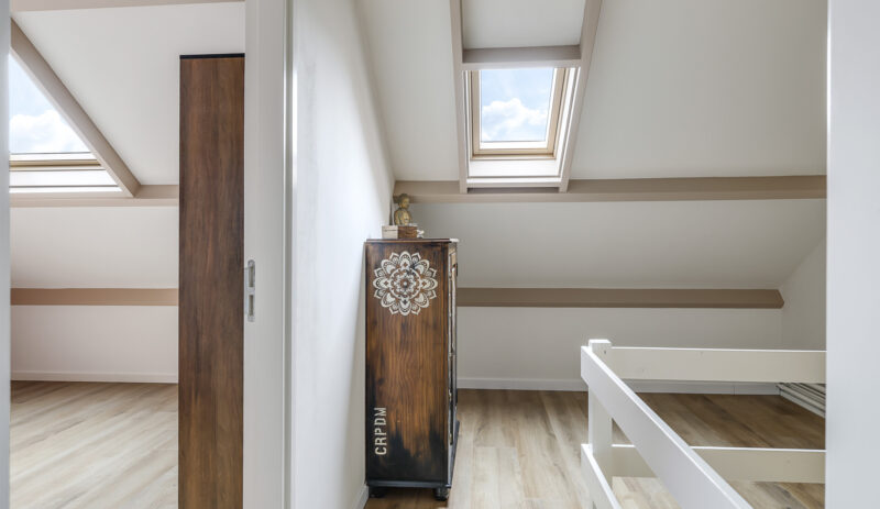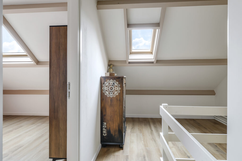 De zolderverdieping biedt een vierde ruime slaapkamer en een voorzolder met volop bergruimte.