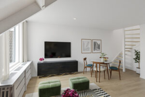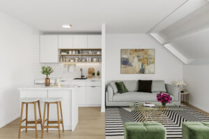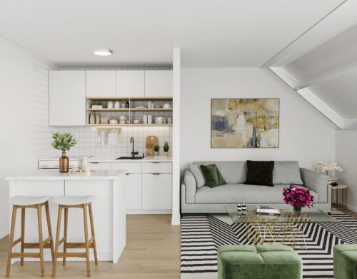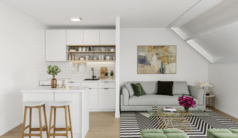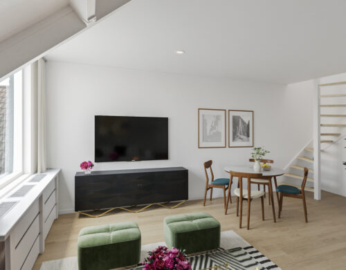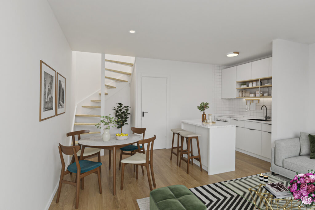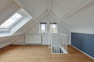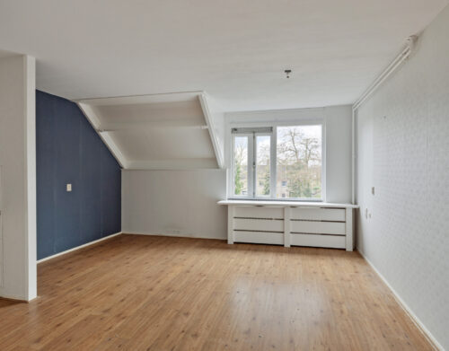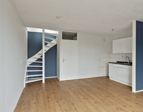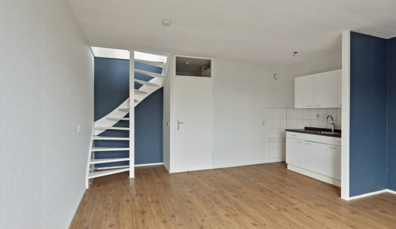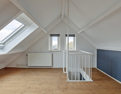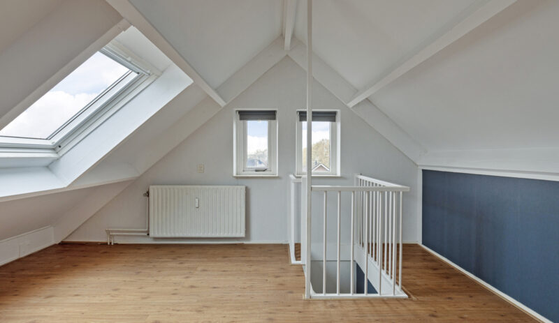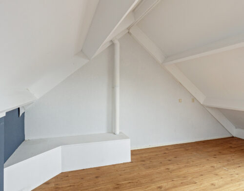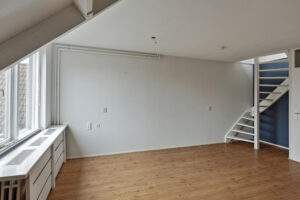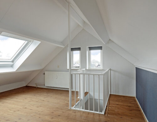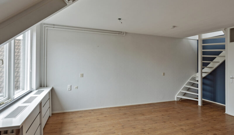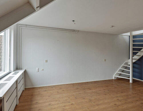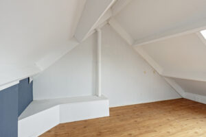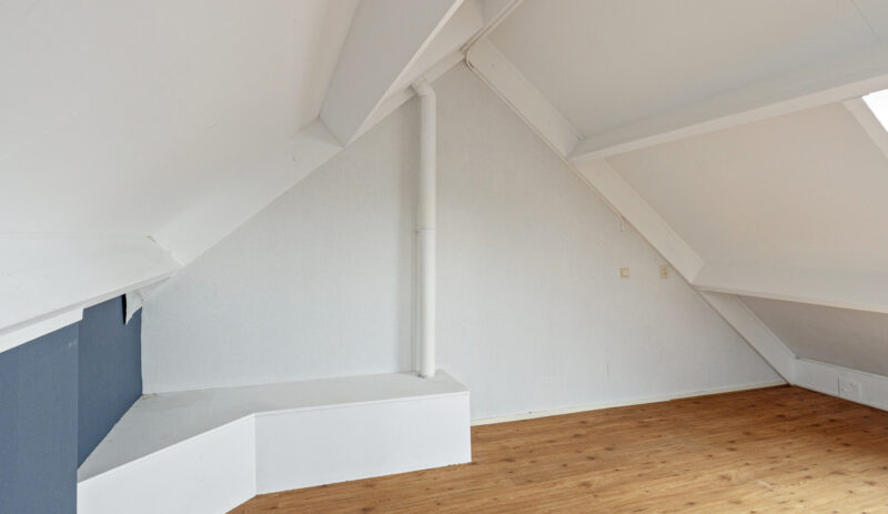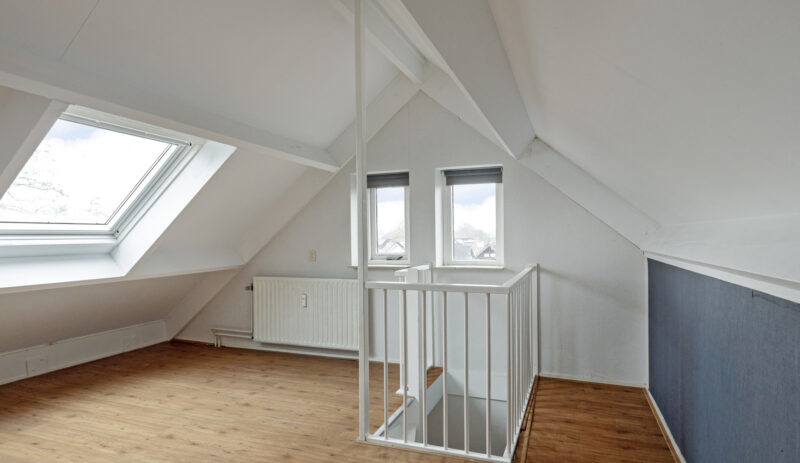Via een vaste trap in de woonkamer kom je op de tweede verdieping waar zich de separate slaapkamer bevind welke door een groot Velux raam over veel natuurlijk licht beschikt.