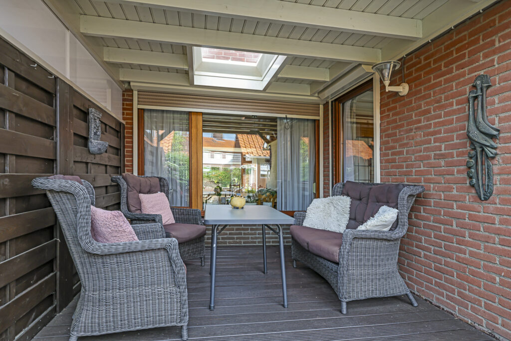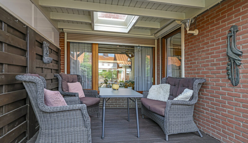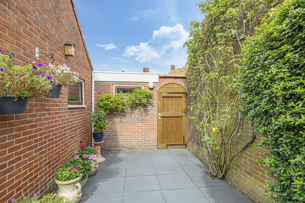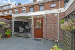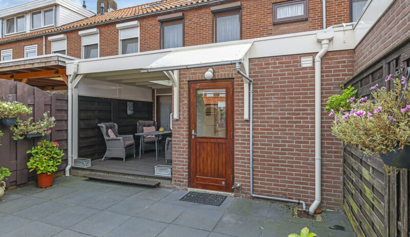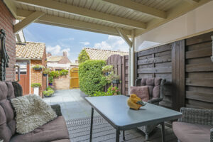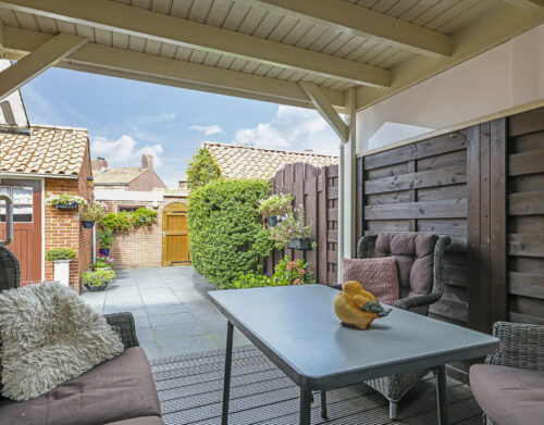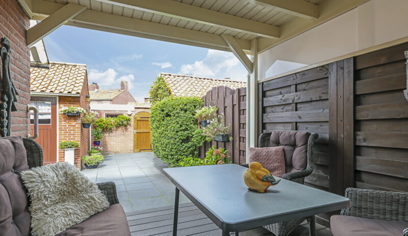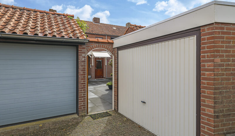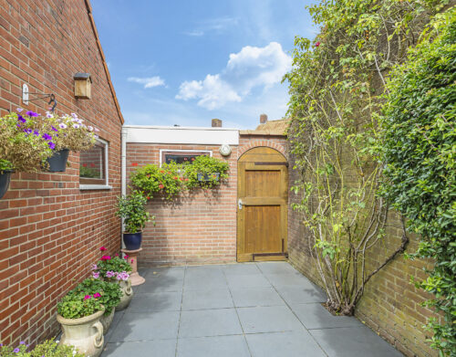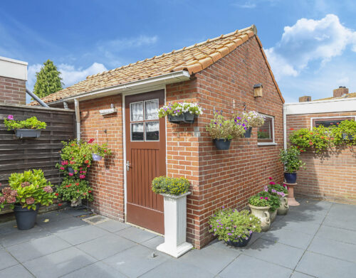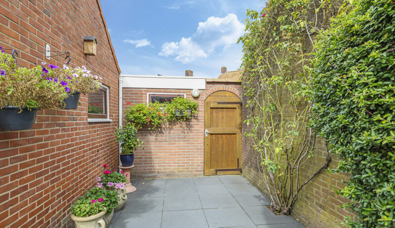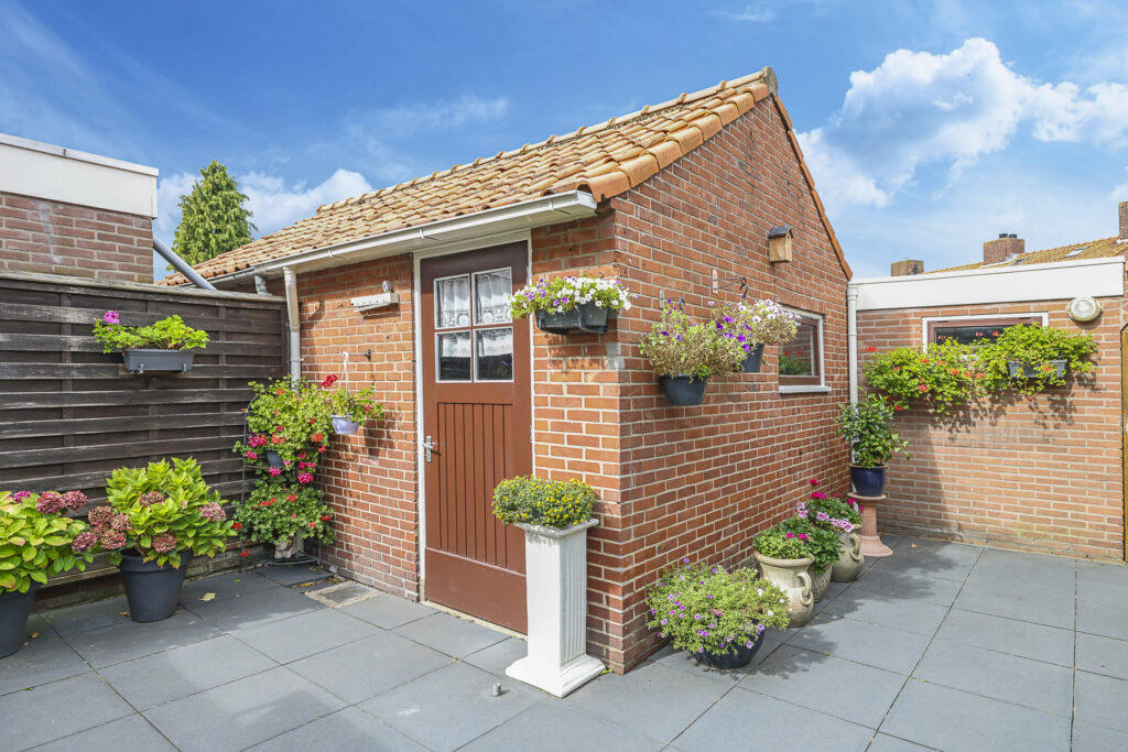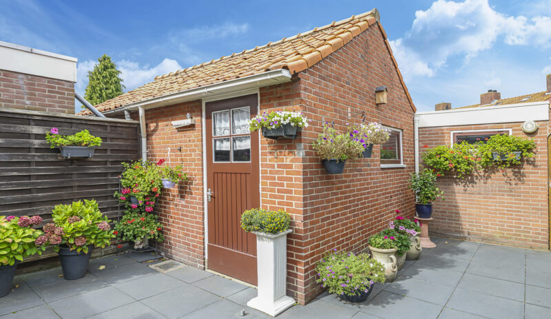 Bij aankomst van de woning wordt u verwelkomt met een charmante voortuin, compleet met diverse planten en een houten bankje. Ook de onderhoudsvriendelijke achtertuin heeft een prettige uitstraling. Dankzij de houten overkapping wordt gezellig samenkomen voor een borrel of diner gemakkelijk gemaakt. De tuin is sfeervol ingericht met grijze betegeling en een stenen berging. Via de achterom bereikt u de aan de berging grenzende stenen garage, ideaal voor het opbergen van uw spullen.