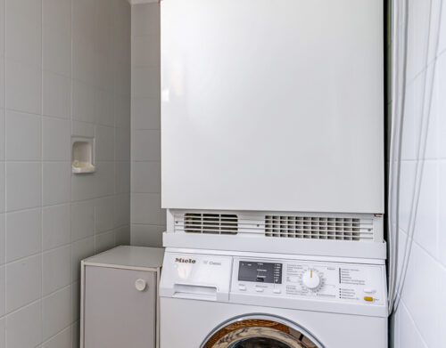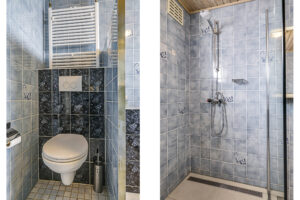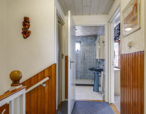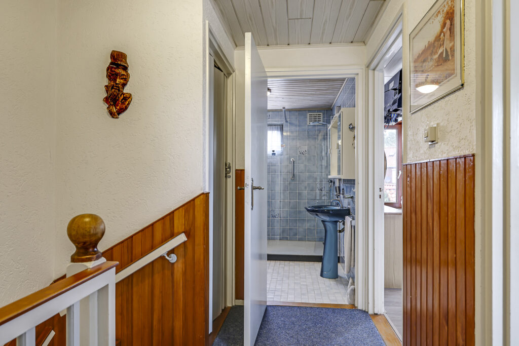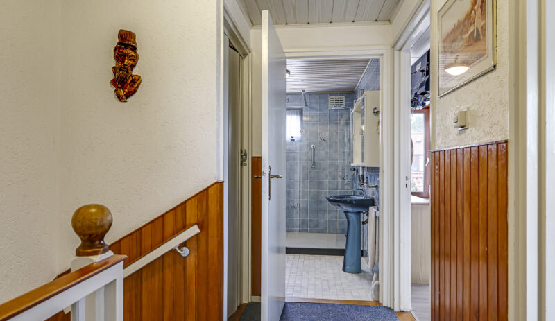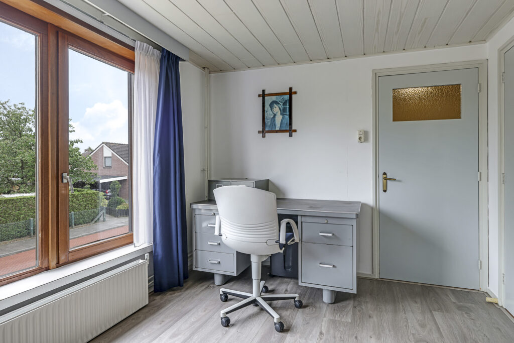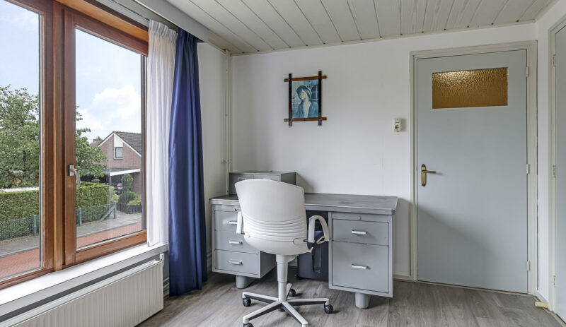 De eerste verdieping biedt twee ruime slaapkamers, een badkamer en meerdere opbergkasten. Allebei de kamers zijn net vormgegeven, ruim en beschikken over houten laminaatvloeren en brede raampartijen. Dankzij de inbouwkasten in de slaapkamers wordt er veel ruimte bespaard. Een voormalige slaapkamer is omgebouwd tot een royale badkamer. Hier geniet u van een zeer ruime instapdouche, wastafel met spiegelkast, designradiator en een zwevend toilet. De voormalige badkamer is nu in gebruik als wasruimte. Tot slot zorgt de zoldervliering met uitklapbare trap voor extra opslagruimte.