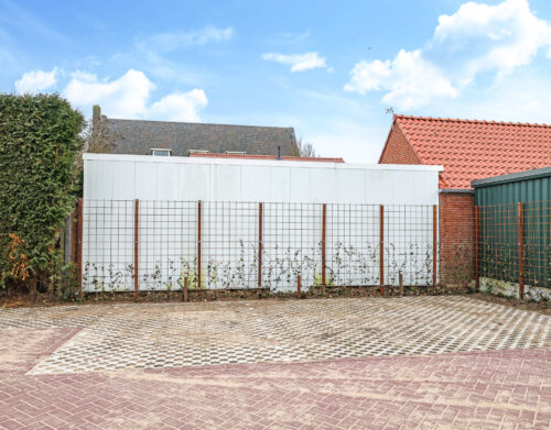 Op het gemeenschappelijke binnenterrein bevinden zich de (privé) parkeerplaatsen en een gemeenschappelijke fietsenberging. De ontwikkelaar heeft het buitenterrein reeds volledig afgewerkt inclusief bestrating, groen voorzieningen en erf afscheidingen.