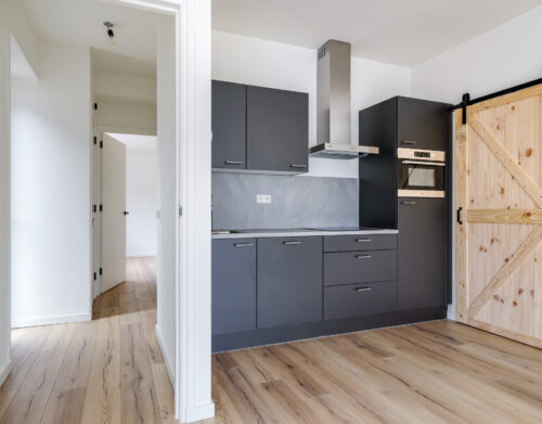 Het appartement is afgewerkt met modern zwart deurbeslag en voorzien van strak stuc/sauswerk. Voor internet zijn zowel een glasvezel- als een Ziggo aansluiting beschikbaar. De woning wordt opgeleverd met een door alle ruimten doorgelegde laminaatvloer, een luxe badkamer en een volledig uitgeruste keuken in zwarte kleurstelling.