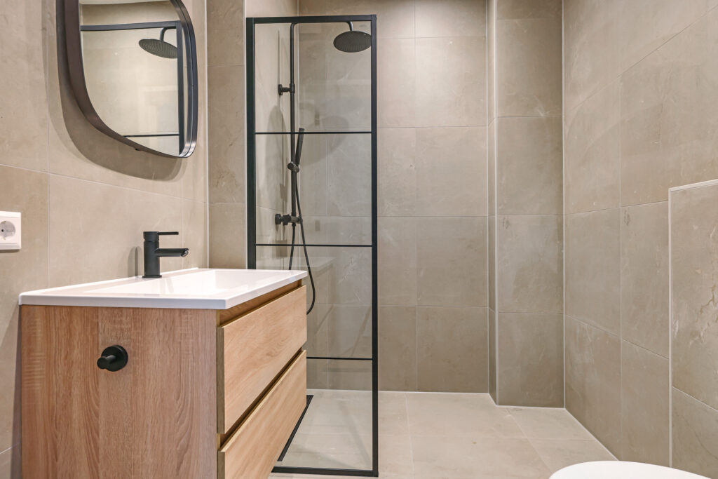 Dit appartement is gelegen op de begane grond en beschikt over een eigen rechtstreekse entree aan de zijkant van het complex. Via een ruime hal krijg je toegang tot de riante en lichte woonkamer met levendig zicht richting het centrum en de open keuken. De keuken is gloednieuw en uitgerust met koelkast, 4 pits inductie kookplaat, vaatwasser en combi oven/magnetron. Naast de keuken zit een toegangsdeur tot de berging met aansluitingen voor de was-/droogcombinatie. Via de hal zijn de slaapkamer en de luxe afgewerkte badkamer bereikbaar. De badkamer is voorzien van een inloopdouche, wandcloset, wastafel met meubel en een spiegel met verlichting en anti condensverwarming.