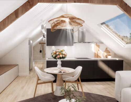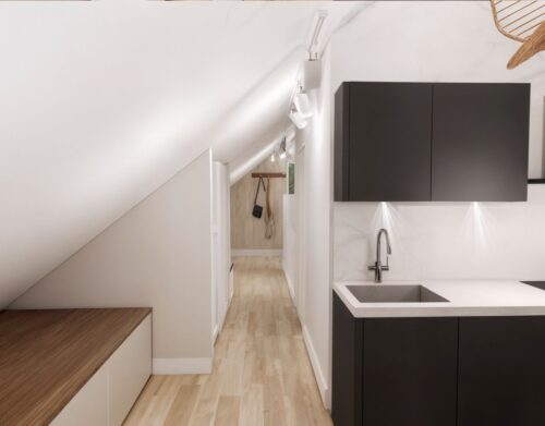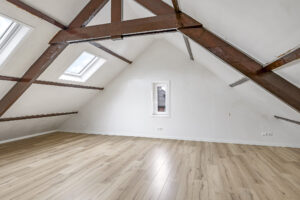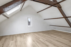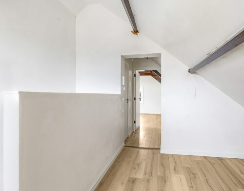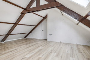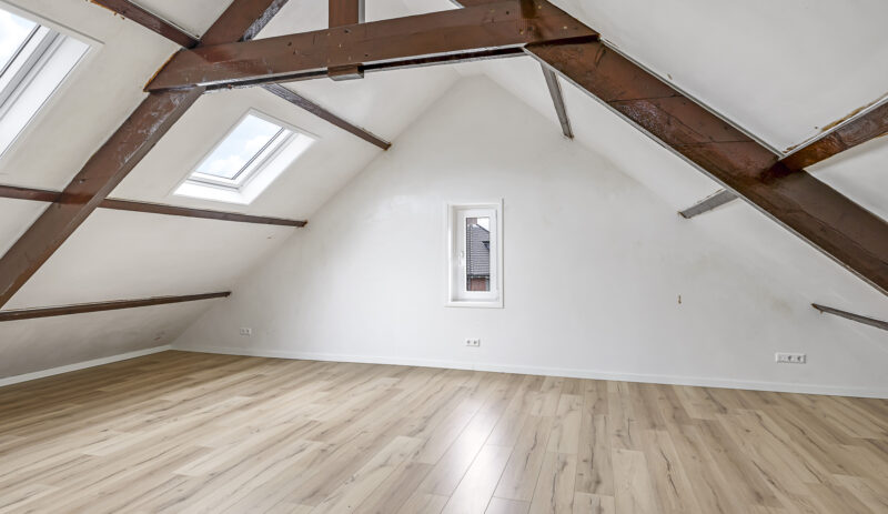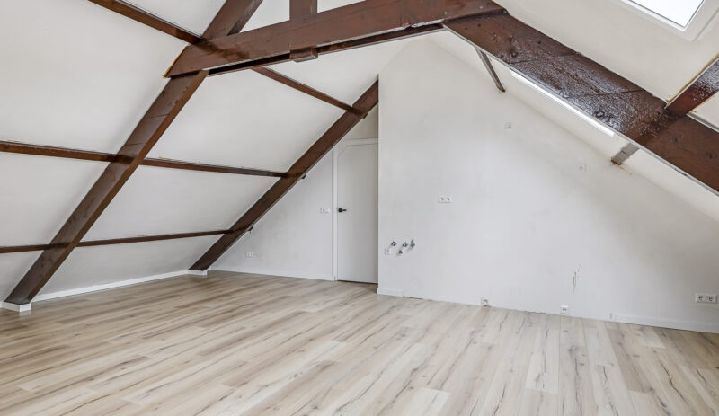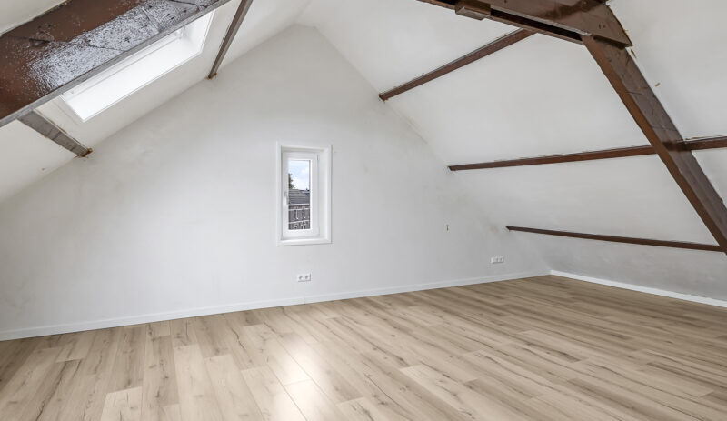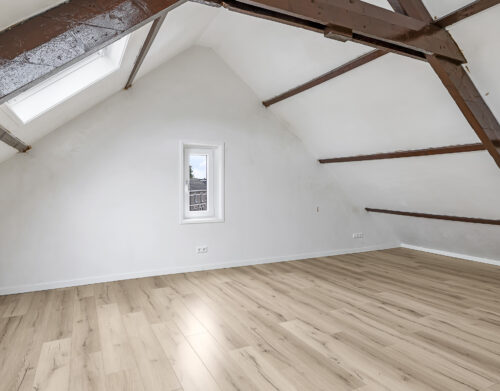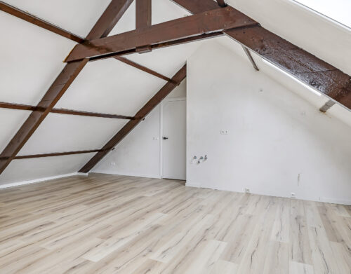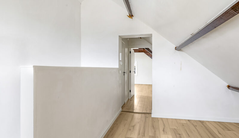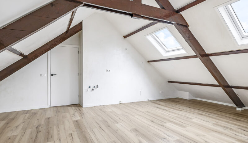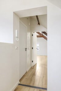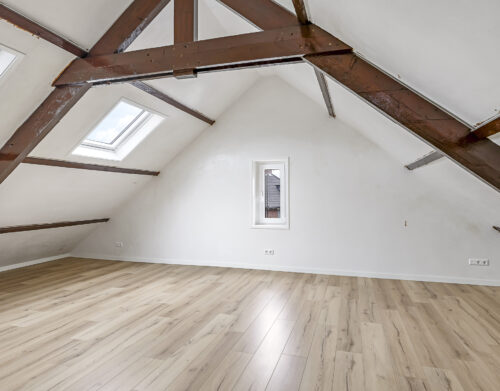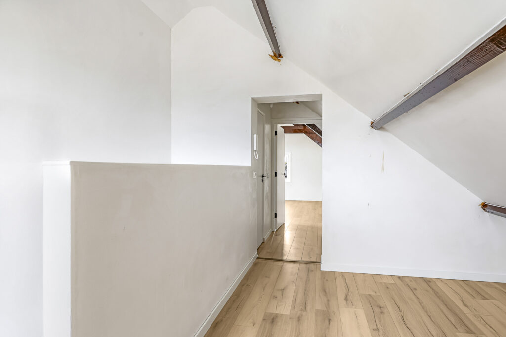Dit appartement is gelegen op de tweede verdieping waarbij de trapopgang van de 1e naar 2e verdieping reeds tot het privé gedeelte wordt gerekend. Via een ruime overloop met mogelijkheid tot het creëren van extra bergruimte kom je in een gang die toegang biedt tot de luxe afgewerkte badkamer (voorzien van inloopdouche, wandcloset, wastafel met meubel en spiegel voorzien van verlichting en anti condensverwarming), een berging/technische ruimte met aansluitingen tot opstelling voor de was/droog combinatie en de riante woonkamer met open keuken. In de woonkamer zijn de authentieke balken van de dakconstructie prachtige in beeld gehouden. De keuken is gloednieuw en uitgerust met koelkast, 4 pits inductie kookplaat, vaatwasser en combi oven/magnetron. Aan de andere zijde van de overloop tref je een slaapkamer.