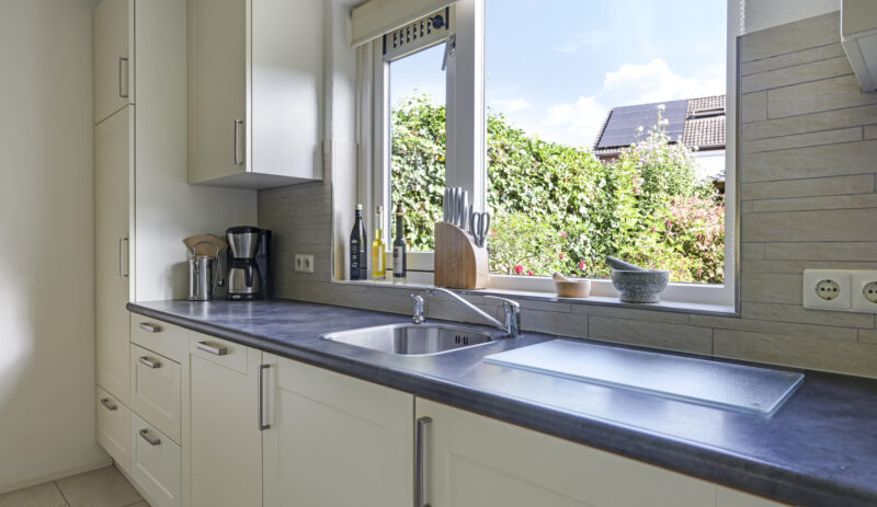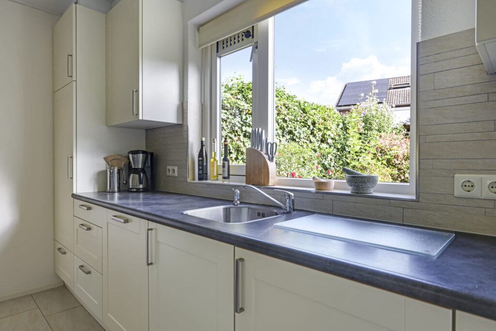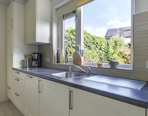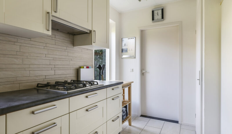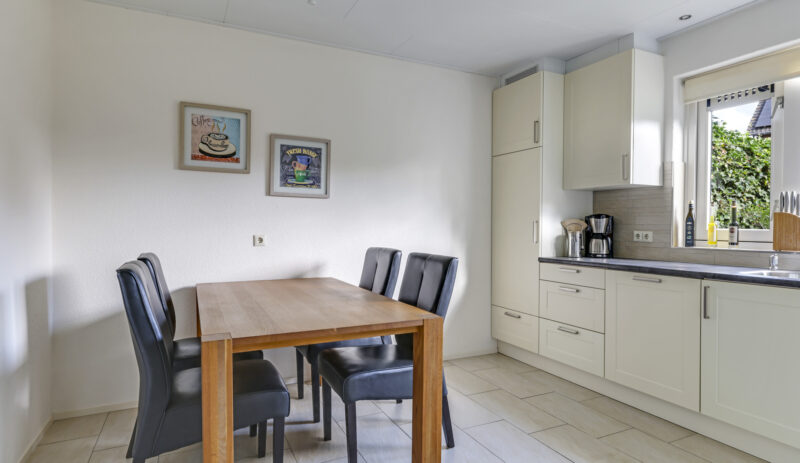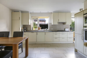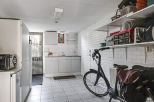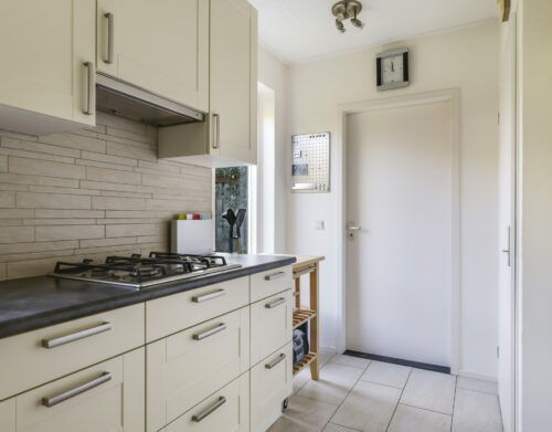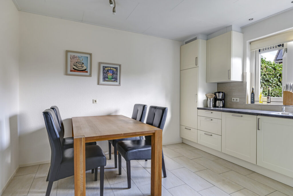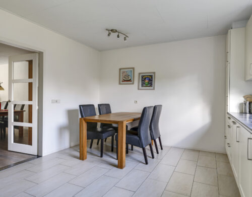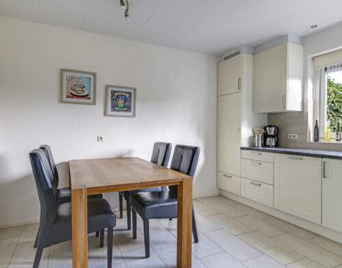 De woning werd in 1995 aan de achterzijde uitgebouwd. Hier vind je nu de gezellige woonkeuken, die direct uitnodigt tot lange tafelsessies en borrelavonden. De nette inbouwkeuken is voorzien van diverse apparatuur, waaronder een koelkast, vaatwasser, gaskookplaat, afzuiging, oven én een stoomoven. Dankzij de kasten en laden is er bovendien volop opbergruimte.