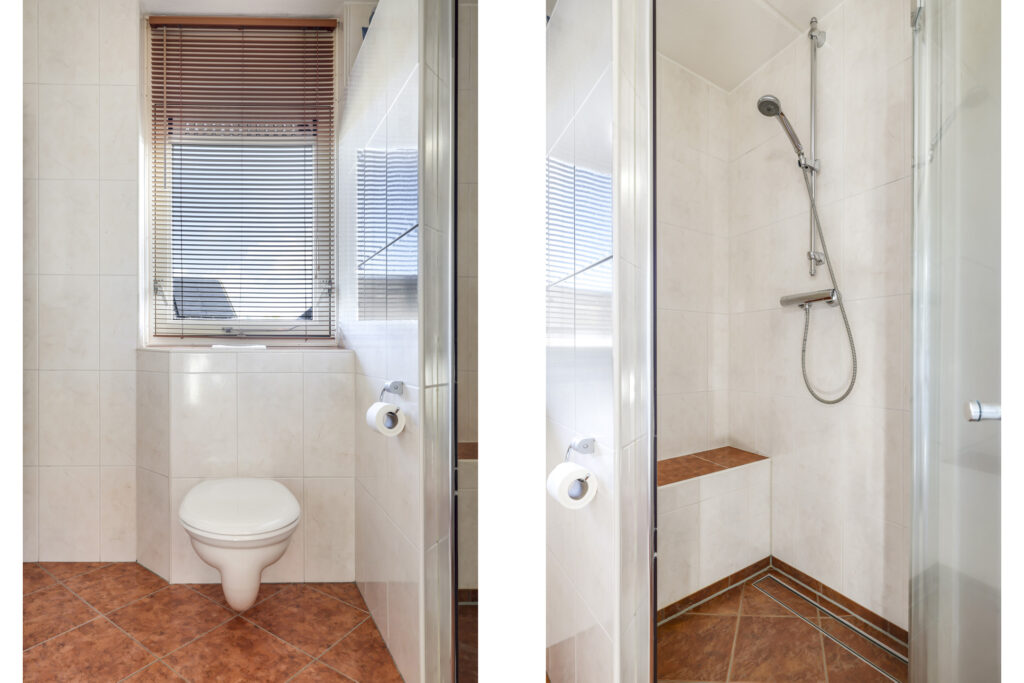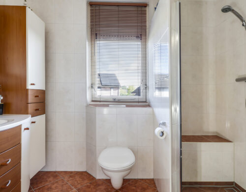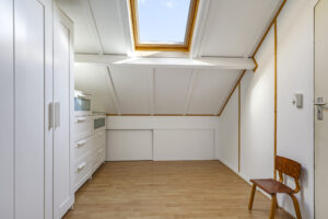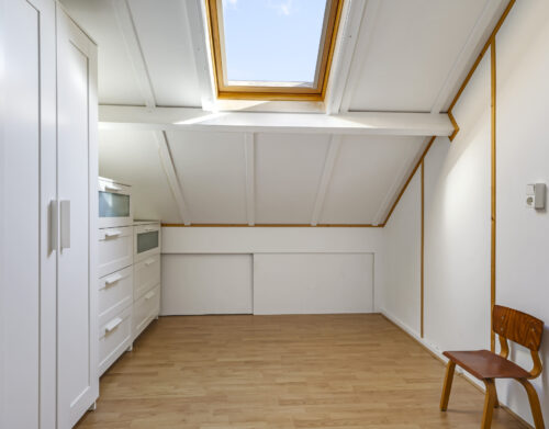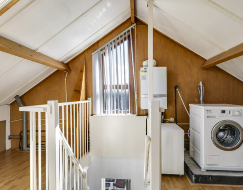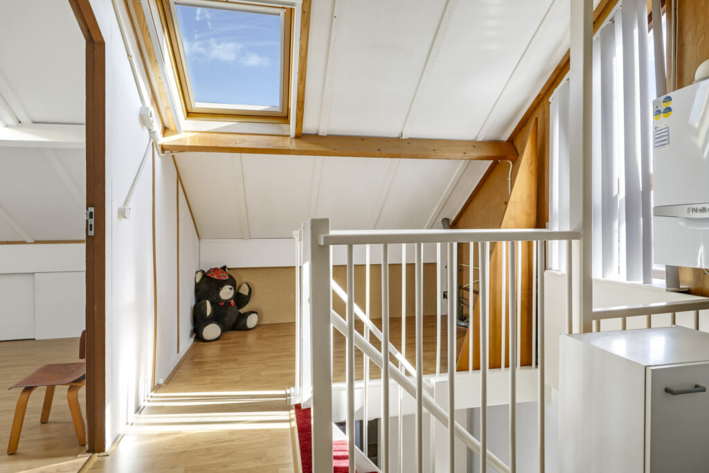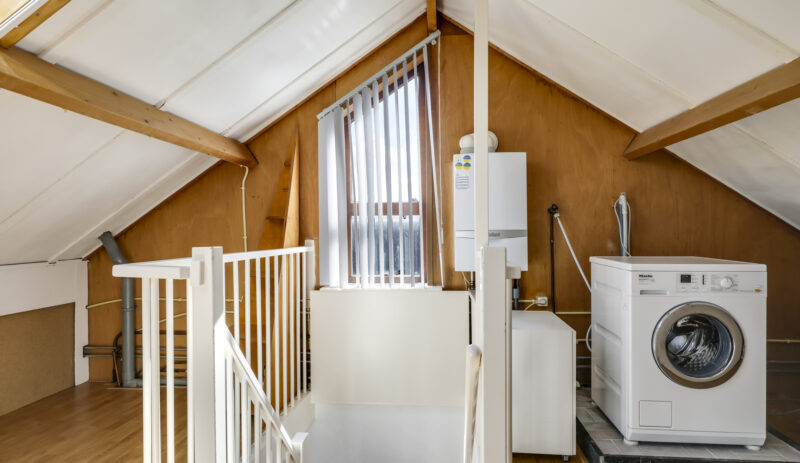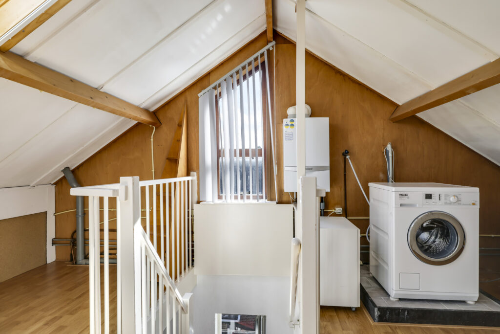 Op de eerste verdieping liggen drie slaapkamers en een verzorgde badkamer met inloopdouche, wastafelmeubel en toilet. Een verdieping hoger vind je de voorzolder met witgoedaansluitingen, de cv-installatie (Vaillant, 2011) en een dakraam dat zorgt voor daglicht. Hier ligt ook de vierde slaapkamer, compleet met bergruimte achter de knieschotten.