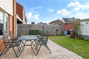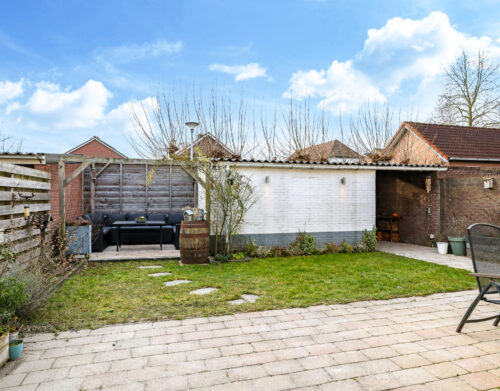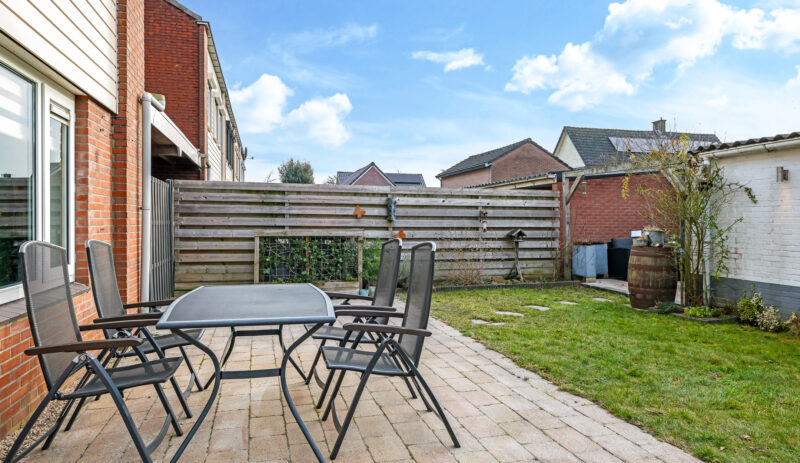 De woning beschikt over een verzorgde tuin die zowel via de voor- als achterzijde bereikbaar is. De zonnige achtertuin is op het zuiden georiënteerd en biedt volop mogelijkheden om te genieten van het buitenleven. Hier vindt u een vrijstaande stenen berging met elektra, ideaal voor fietsen en gereedschap. Daarnaast is er een gezellig zitje waar u tot in de late uurtjes kunt genieten van lange zomeravonden. Op de eigen oprit is parkeergelegenheid voor maar liefst twee auto’s, wat zorgt voor extra comfort.