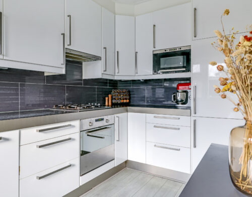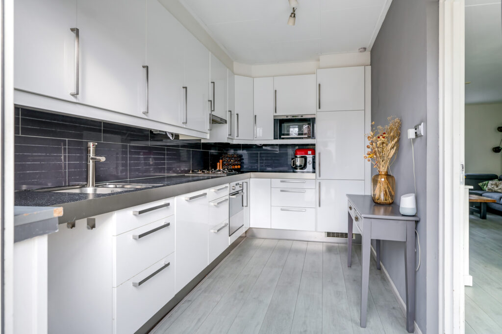 De dichte keuken is bereikbaar vanuit de woon-/eetkamer en is volledig ingericht. U beschikt hier over een 4-pits gastoestel, oven, magnetron, koelkast, diepvries, afzuigkap, spoelbak en een designradiator. Een complete keuken waar u direct comfortabel kunt koken.