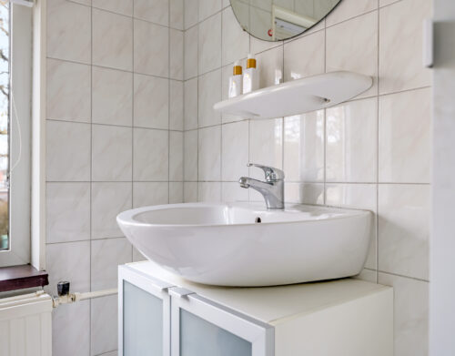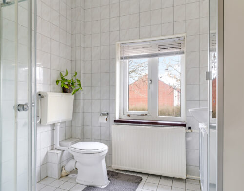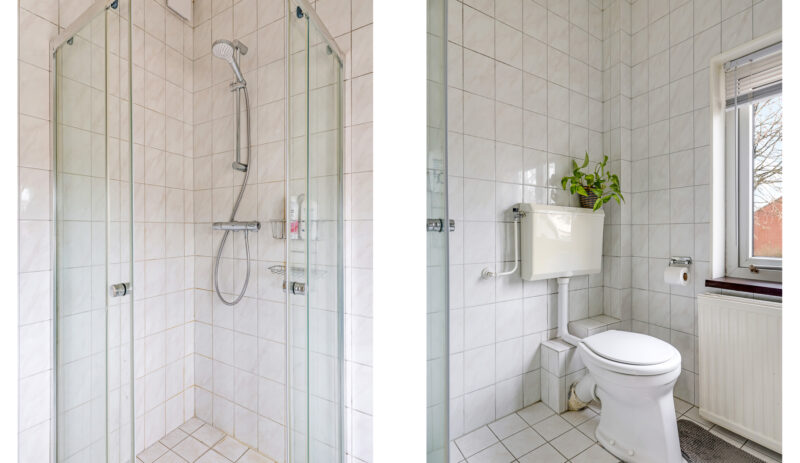 Via de overloop bereikt u drie ruime slaapkamers en de badkamer. Alle kamers zijn netjes afgewerkt en voorzien van een laminaatvloer, wat zorgt voor een rustige en uniforme uitstraling. De badkamer is praktisch ingericht met een douchecabine, een staand toilet en een wastafelmeubel.